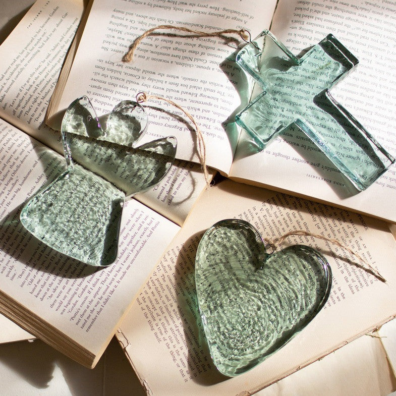 Surprise your loved one with a delicate, but substantial and sizable heart ornament made of recycled glass.
