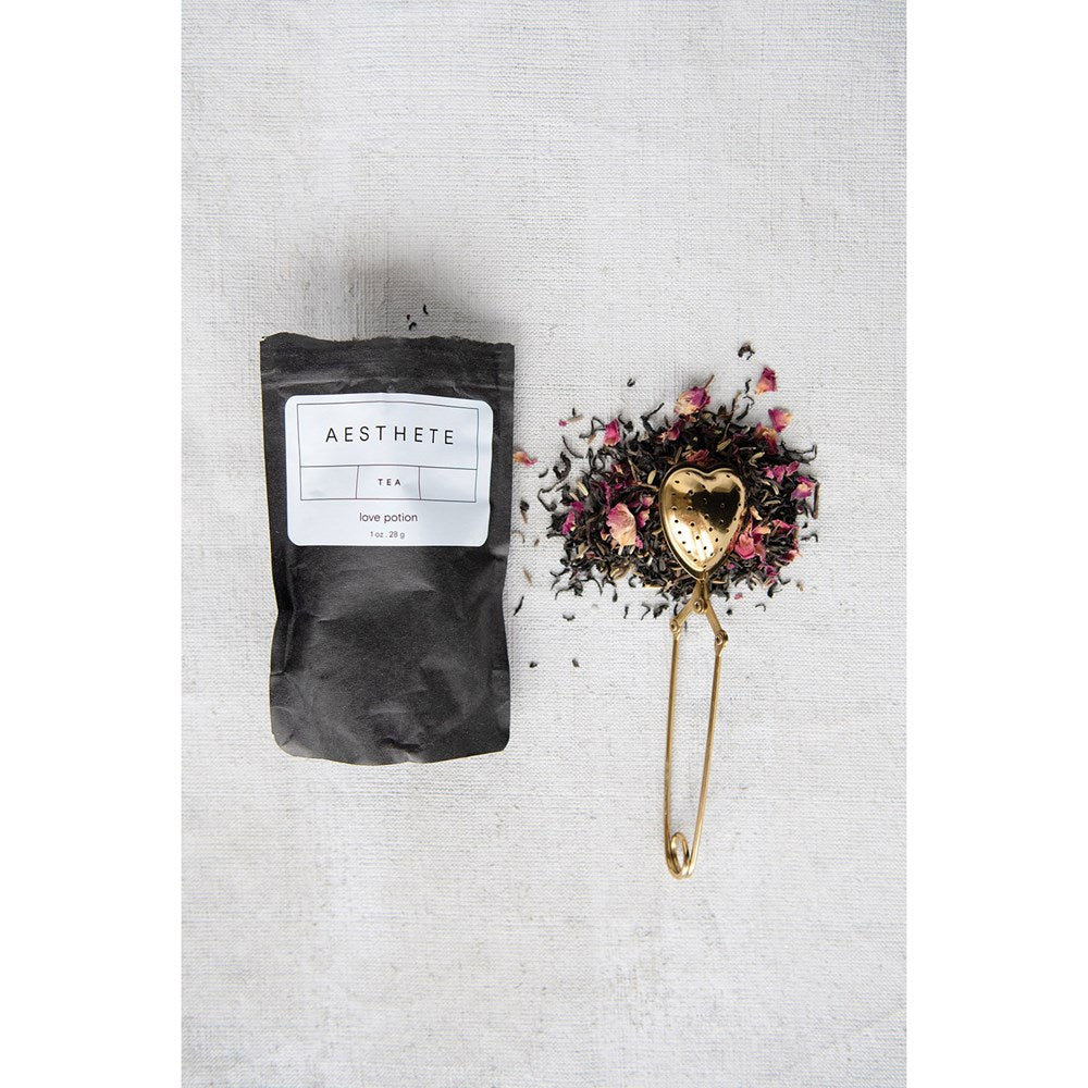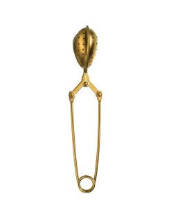 6″L Stainless Steel Heart Shaped Loose Tea Strainer, Gold Finish