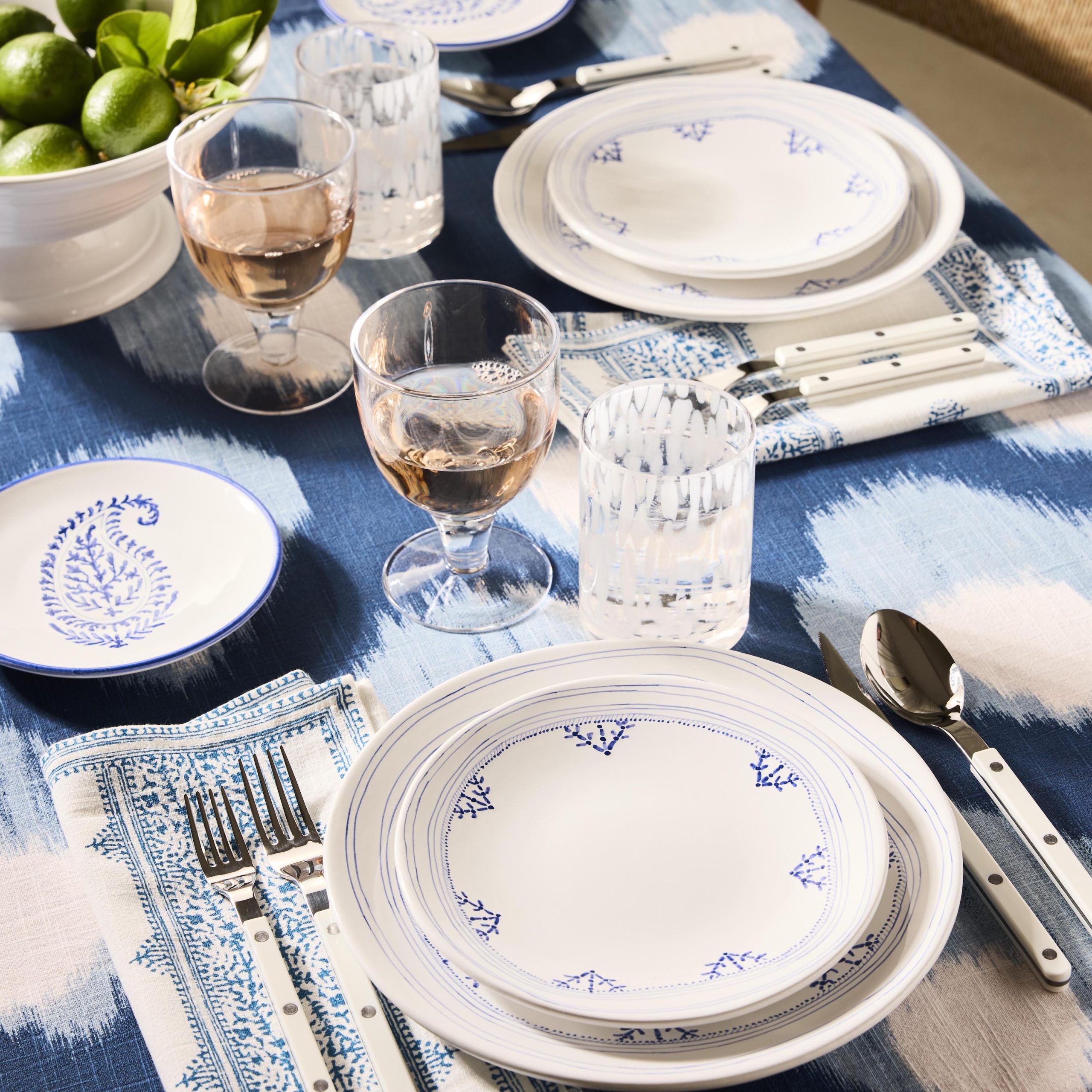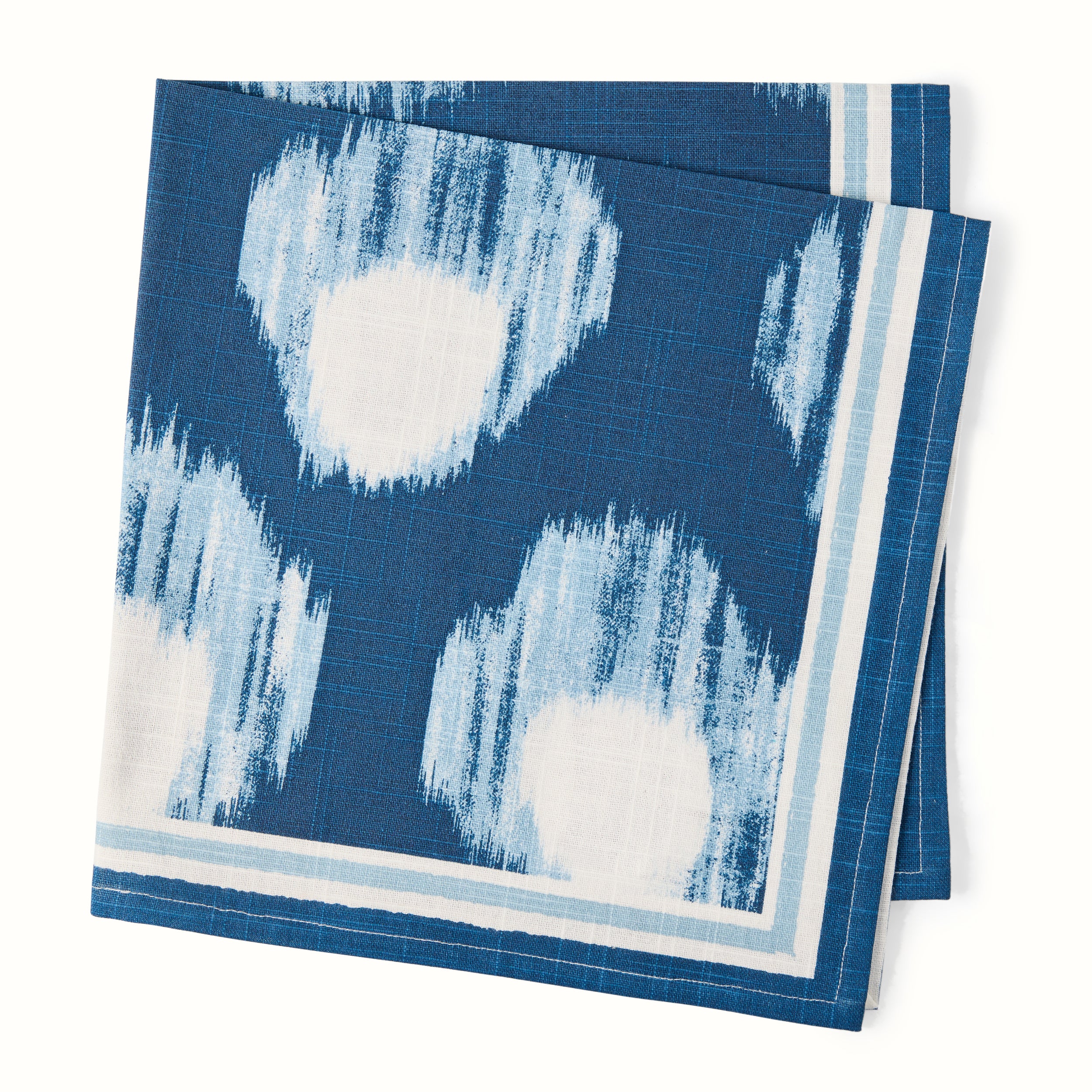 Add a pop of pattern with the Bukhara Ikat Printed napkin in Blue‚ a bold print softened by the blurred edges of a classic ikat. Made from 100% cotton slub, it has a relaxed, textured feel with lasting durability. This ikat tablecloth will layer perfectly with other linens in the PD x HG collection.