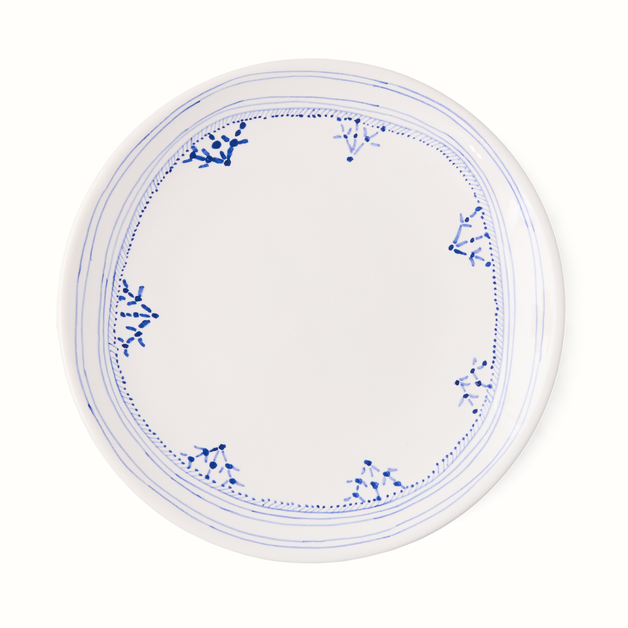 Made in Italy, each plate is intricately hand-painted, unique, and made for mixing and matching. With a colorful pattern around the border, the Blue Painted Border Appetizer Plate will bring a casual style to your table. Perfect for everyday entertaining.