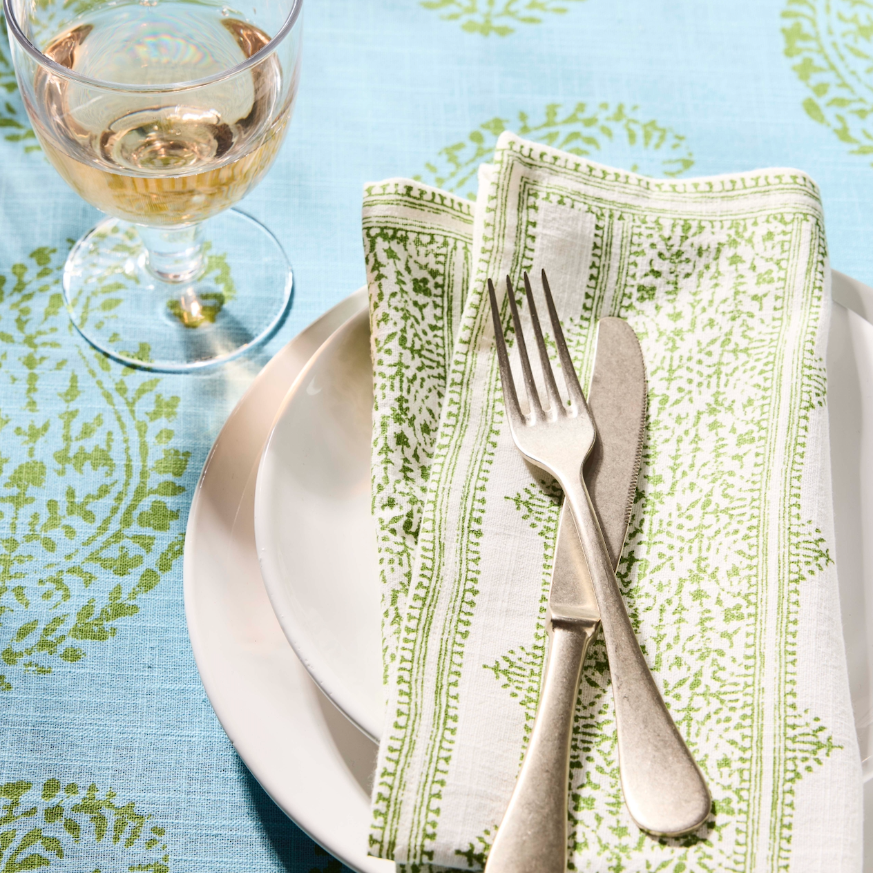 Details with personality—the charm of the Fez Printed Napkin in Green. With an intricate stripe pattern inspired by vintage embroidery, the Fez print adds a playful layer to your table. Made from 100% cotton slub, it offers a relaxed, textured feel with lasting durability. This striped napkin will layer perfectly with other linens in the PD x HG collection.
