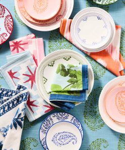 Inspired by fig groves in Spain, the Fig Printed Napkin captures the memories of a European summer. Featuring bold green fig leaves against a soft blue, this iconic print brings a colorful touch to your table. Made from 100% cotton slub, it offers a relaxed, textured feel with the durability to handle everyday dining or special occasions. This napkin will layer perfectly with other linens in the PD x HG collection.