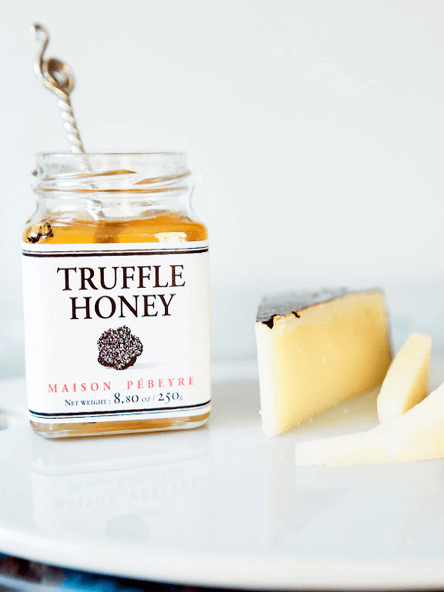 An amazing and flavorful French honey combined with thinly sliced summer truffles. The beautiful jar is filled with a golden honey and peelings of black summer truffles. As you open it, your room will be filled with a subtle, yet natural scent of pure truffle. Enhance any cheese platter by drizzling over Brie or any other creamy cheeses.